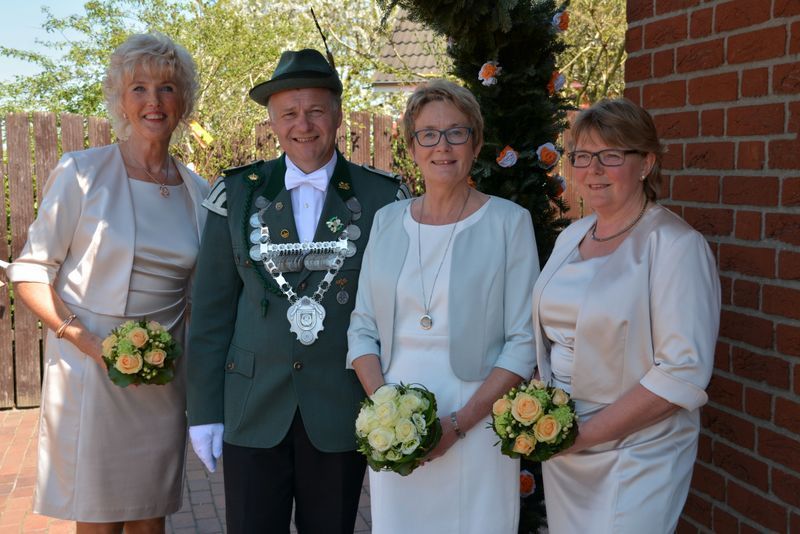 2016: König Rainer Horstmann mit Königin Rita Horstmann und den Ehrendamen Susanne Landwehr und Heike Rußmann.